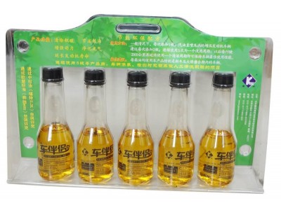 高科牌車伴侶汽油清凈劑(第四代燃油寶)是由兩種不同的高分子聚醚醇酰胺類混合物配以多種輔助劑復配而成,其中的重要成分是兩種不同的特種結構聚醚胺和聚醚醇酰胺,一種分子量約1000的合成聚醚胺具有非常強的清潔去垢作用,另一種分子量約2000的改性聚醚醇酰胺具有更高的養護保潔作用,同時具有減少汽油摩擦磨損的性能。這兩種特殊結構的聚醚胺都具有很好的抗氧化性和清凈分散性,對膠質化合物、微小顆粒具有極強的吸附及捕捉能力,可阻止其進一步的氧化和聚集,從而可大大減少汽油中沉渣的形成,與汽油的互溶性良好,且同時具有很好的防腐性能。該產品既具有一般PIBA(一般清凈劑常用的聚異胺)的清潔作用,同時分子量更大的胺熱穩定性好,對于發動機燃燒室前的油路系統具有更高的養護作用。與PIBA類的產品由于熱穩定性更強、燃燒不易于燃燒室形成二次積炭不同的是:這兩種特殊的胺類產品在隨著油氣混合物進入燃燒室,同時完成了對燃燒室積炭的軟化、分散、剝離、清除,后隨著油氣混合物一起燃燒,不會產生新的積炭等,終通過發動機排氣系統排出,因而該產品是目前對燃燒室清潔效果、安全的無灰添加劑。