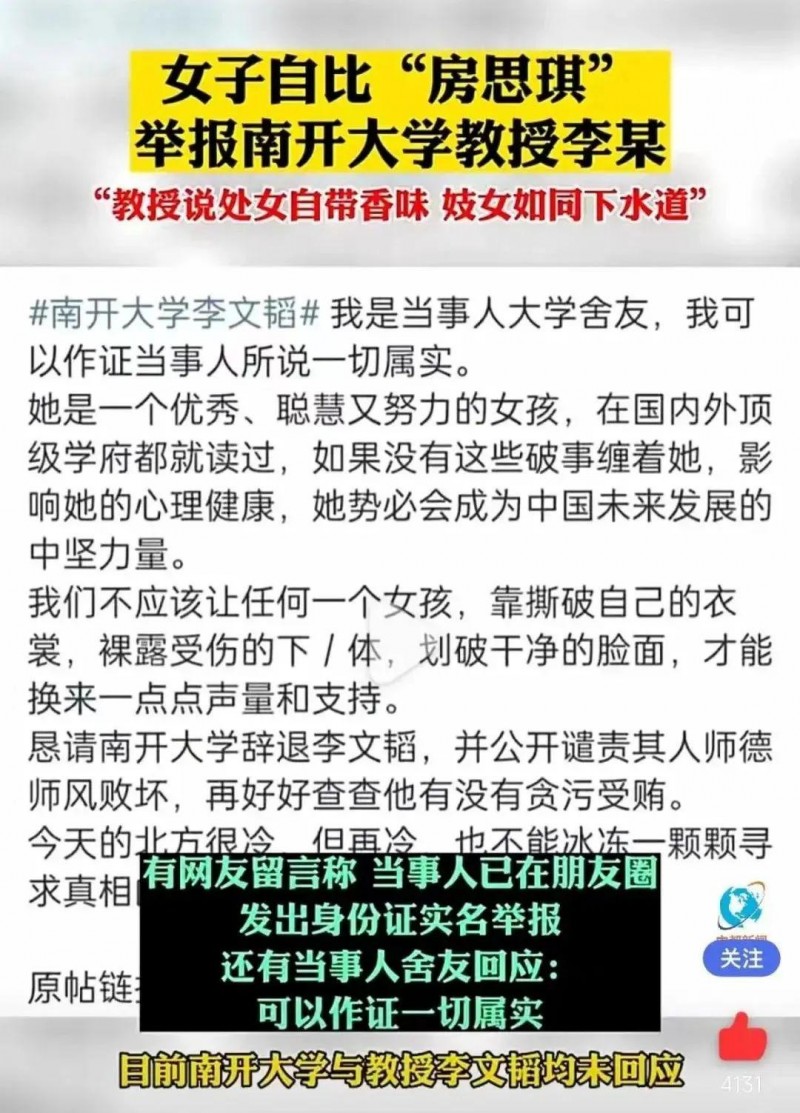 關鍵在于,南開大學是否真的開始著手調(diào)查這幾位老師被舉報的事項,還是僅僅做一個表態(tài)?
