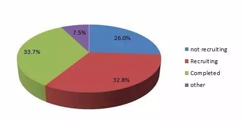 從臨床研究的所處階段的情況來看,根據可以獲得相關數據的558項臨床研究結果分析,可以發現已經完成和正在開展的臨床研究各占1/3(表2)。