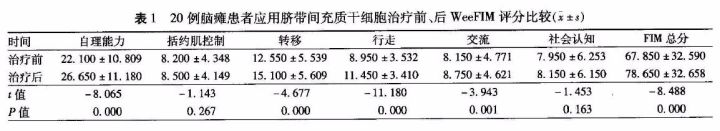 解放軍323醫院細胞治療中心對20位小兒腦癱患者,經腰椎穿刺在蛛網膜下腔注射臍帶間充質干細胞,細胞輸注4周后,所有患者靜止性震顫,運動遲緩,肌強直,姿勢步態障礙均有不同程度的緩解。