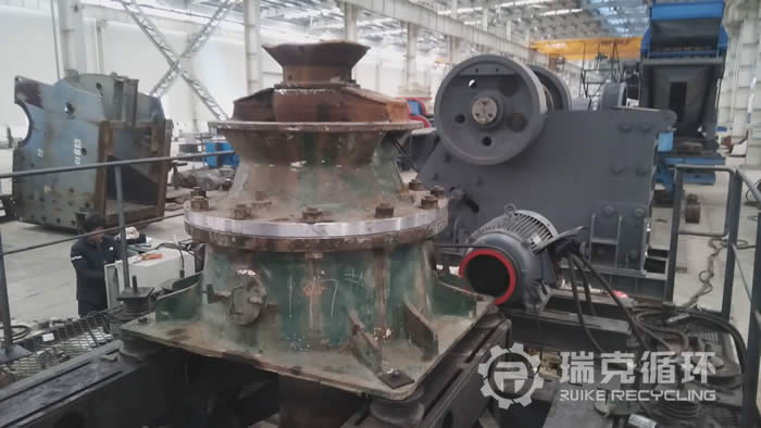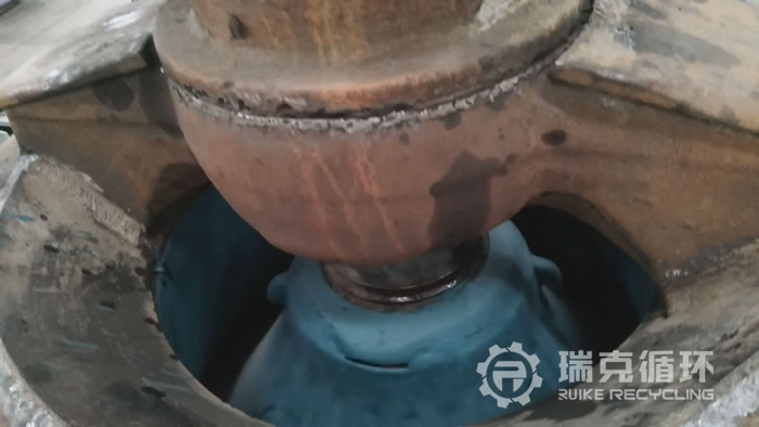 該臺(tái)GP100單缸圓錐破碎機(jī)是我公司銷售人員山東回收的,由于該企業(yè)與當(dāng)?shù)匾粋€(gè)高速公路合作,現(xiàn)有的設(shè)備已經(jīng)不能滿足生產(chǎn)的需求,因此將設(shè)備轉(zhuǎn)讓給我公司。設(shè)備回收運(yùn)回公司以后,我們公司技術(shù)人員對(duì)該設(shè)備進(jìn)行了詳細(xì)的檢查,并根據(jù)檢查結(jié)果對(duì)該臺(tái)圓錐出了具體方案進(jìn)行檢修,拆開后發(fā)現(xiàn)上下架體完好,只是漆面不完整,主要部位主軸、動(dòng)錐部都完好無損。隨后對(duì)下架體底部管路全部換新,然后重新組裝并進(jìn)行了數(shù)個(gè)小時(shí)的試機(jī),試機(jī)中該設(shè)備性能非常的穩(wěn)定,沒有出現(xiàn)不良現(xiàn)象。