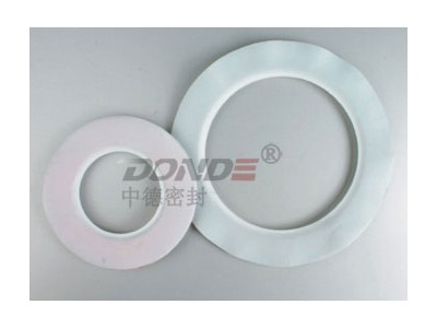 聚四氟乙烯包覆墊片又稱四氟包覆墊片是一種非金屬墊片,一般由包覆層及嵌入物兩部分組成。包覆層主要起耐腐蝕作用,通常由聚四氟乙烯材料制成,嵌入物(填料)為彈性較好的帶或不帶金屬增強層的非金屬密封材料,通常為石棉橡膠板、非石棉橡膠板、石墨復合板等。聚四氟乙烯包履墊片主要適用于全平面型及突面型鋼制管法蘭連接,適用公稱壓力PN為0.6~5.0MPa、工作溫度為0~150 ℃的腐蝕介質或對清潔度有較高要求的介質。該密封墊片根據內芯結構不同,分V型、U型及L型。石油、化工、制藥及食品工業中的一些容器、管道、閥門連接,為保證物料清潔也常常采用聚四氟乙烯墊片進行密封。