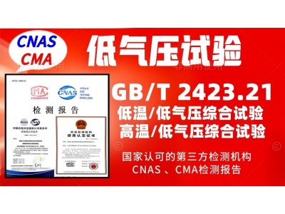 北京儀綜所環境可靠性試驗及電磁兼容檢測中心,提供專用設備的高原低氣壓試驗,是北京地區大型的綜合性的檢測機構,具備CNAS和CMA資質。出具CMA,CNAS報告,檢測周期短,數據準確,更多低氣壓試驗: